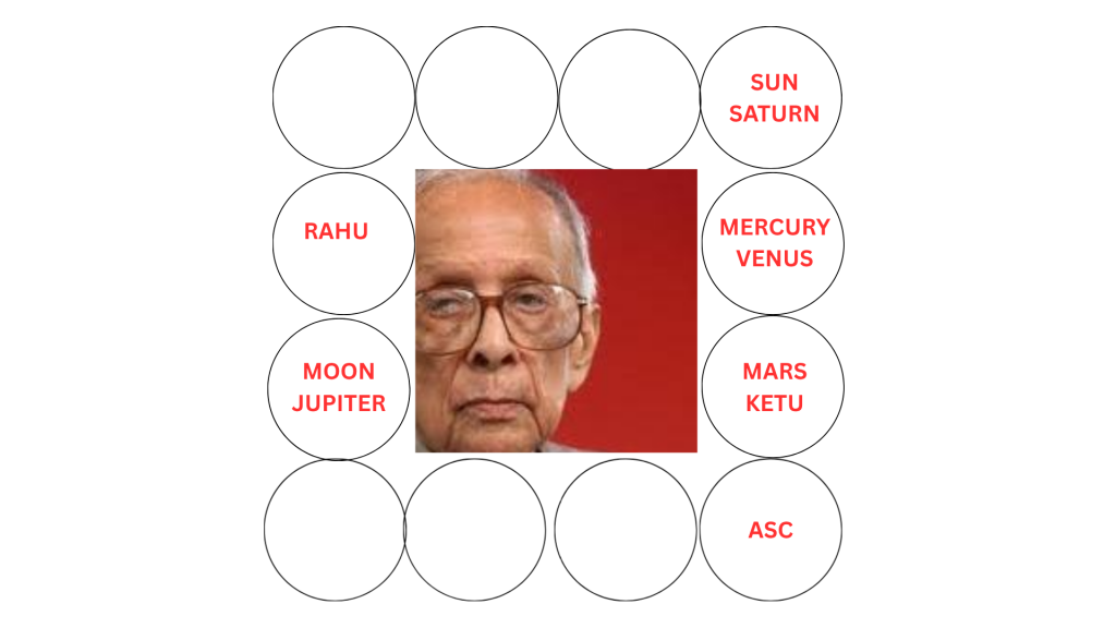 இந்த யோகத்தின் சிறப்பை விளக்கும் சிறந்த உதாரணம் — மேற்கு வங்கத்தின் முன்னாள் முதல்வரின் ஜாதகம்.