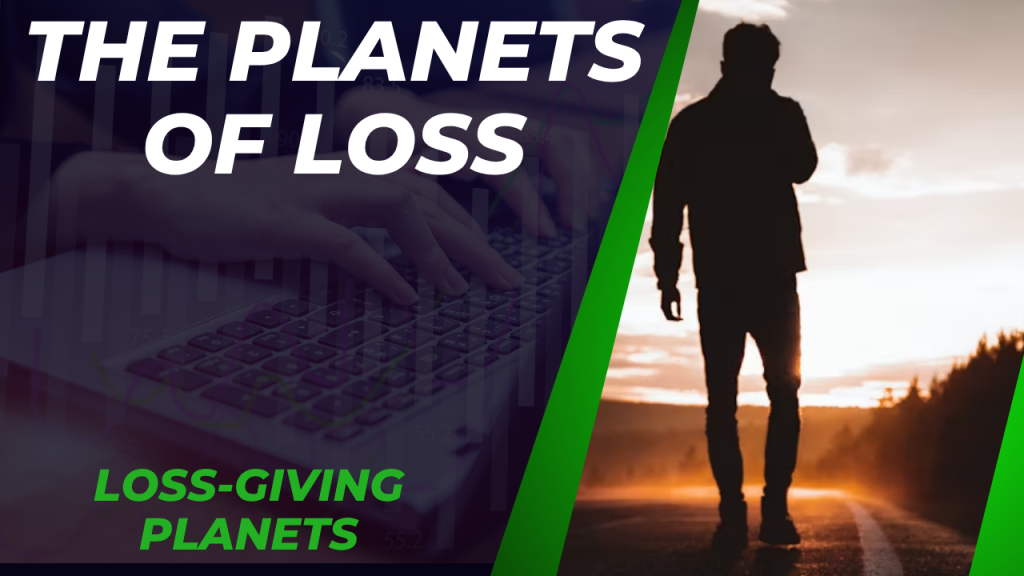 In this horoscope, Jupiter, Mercury, and the Sun are identified as planets causing loss.